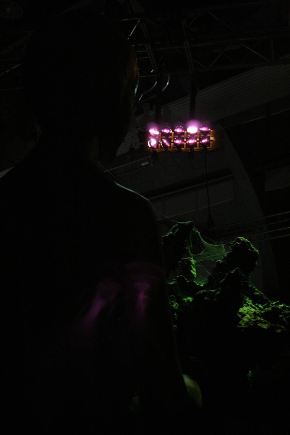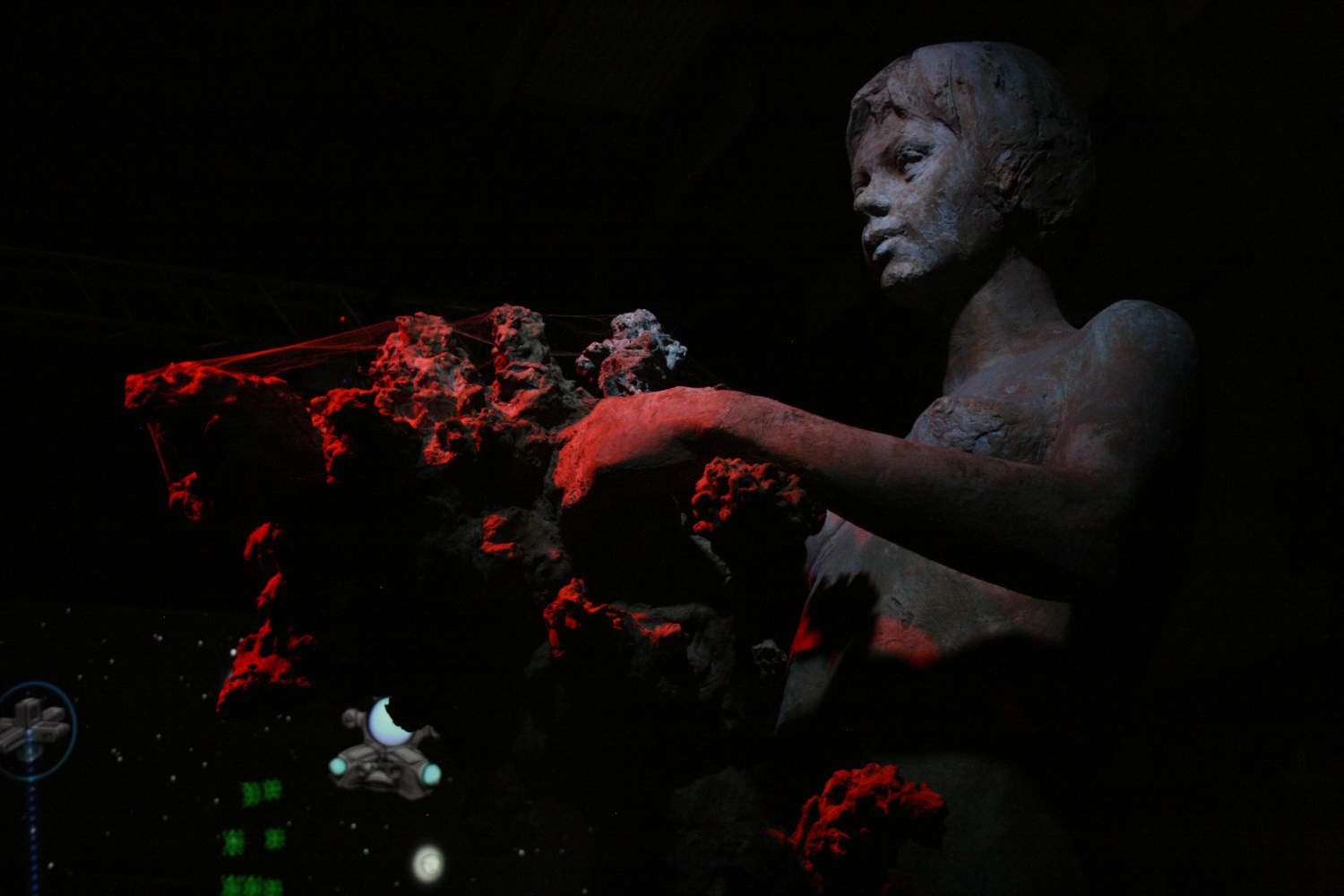 When the camera points at the sculpture's head, the girl starts singing. Whenever the IR camera sees a human, the sculpture starts heartbeating.